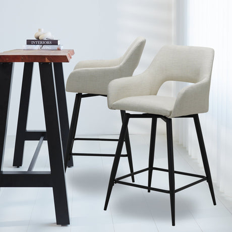 399,95Grundpreis /Nicht verfügbarDrehbarer Barhocker Beige Stoff Skye - Sitzhöhe 67 cm - Mit Armlehnen