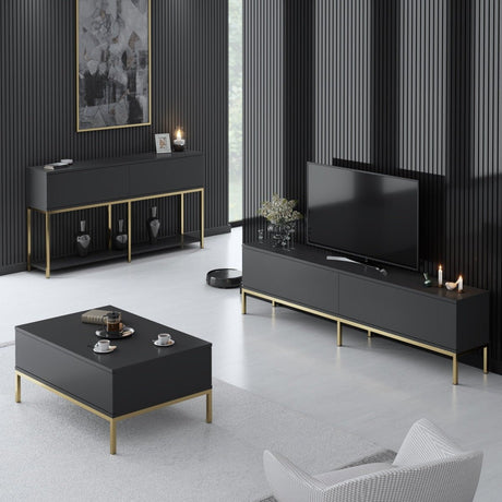 219,95Grundpreis /Nicht verfügbarMöbelset Anthrazit Lord - Couchtisch + TV-Schrank + Sideboard - Goldener Rahmen
