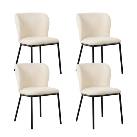 428,20Grundpreis /Nicht verfügbarSet von 4 Esszimmerstühlen Tess Weiß Bouclé Stoff - Ohne Armlehnen
