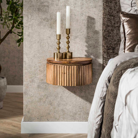 272,53Grundpreis /Nicht verfügbarSchwebender Nachttisch Curve rund 1-Schublade Mangoholz Sand