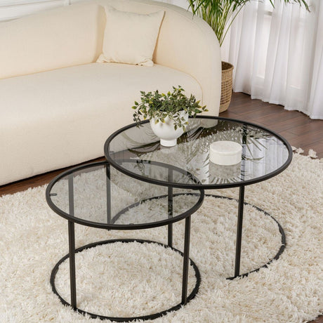 79,95Grundpreis /Nicht verfügbarModerne runde Couchtisch-Set aus 2 Uru Schwarz - Graues Glas - 80/60 cm