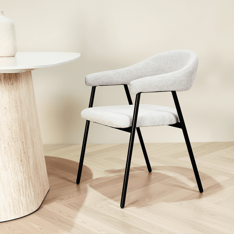 1.599,95Grundpreis /Nicht verfügbarEsszimmerstuhl Bouclé Beige Lisa - Schwarzes Gestell