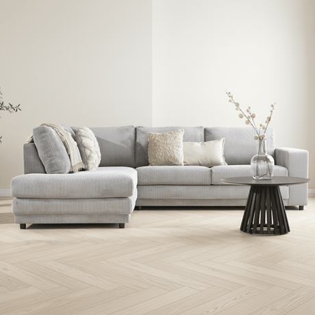 1.599,95Grundpreis /Nicht verfügbarEcksofa hellgraues Rippstoff-Sofagarnitur Gabi - links