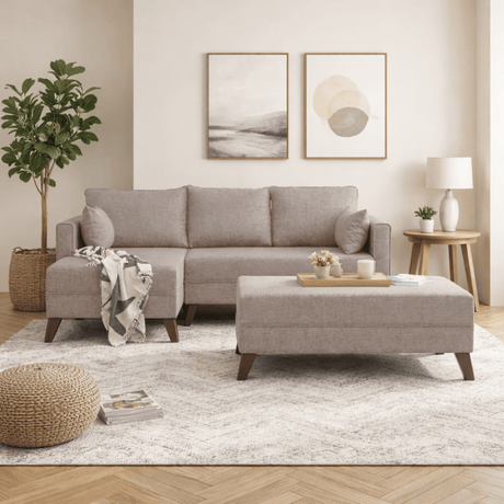 1.999,00Grundpreis /Nicht verfügbarSchlafsofa taupefarbener Stoff – Ecksofa inklusive Hocker – Links – Bella