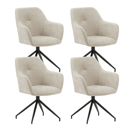 618,60Grundpreis /Nicht verfügbarSet von 4 Drehbaren Esszimmerstühlen Nela Chenille Beige - Mit Armlehnen