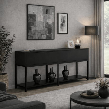 618,60Grundpreis /Nicht verfügbarModerne Kommode Anthrazit Lord 150x30x80 - Schwarzer Rahmen - Zwei Fächer