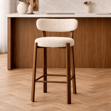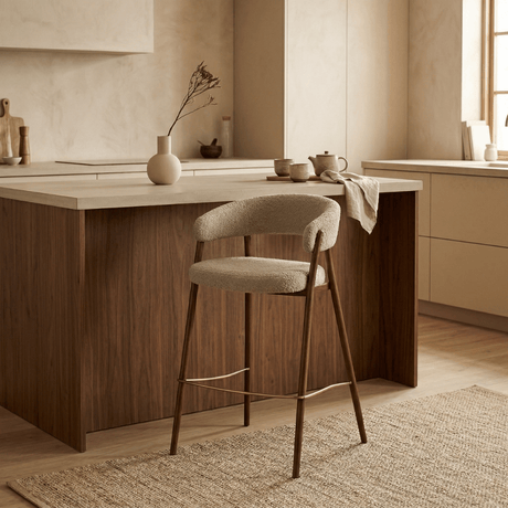 130,85Grundpreis /Nicht verfügbarBarstoel bouclé zandkleur Kaito - walnootlook frame - Japandi