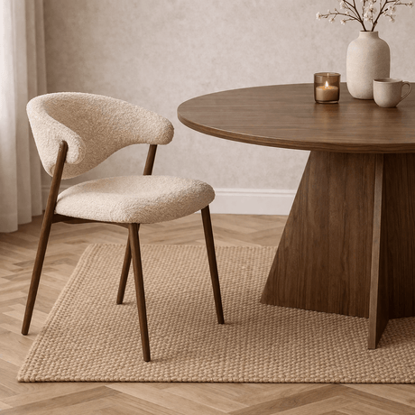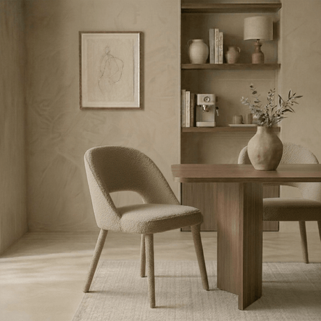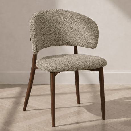 95,15Grundpreis /Nicht verfügbarEsszimmerstuhl Bouclé Sandfarben Jiro - Walnuss-Optik Gestell - Japandi