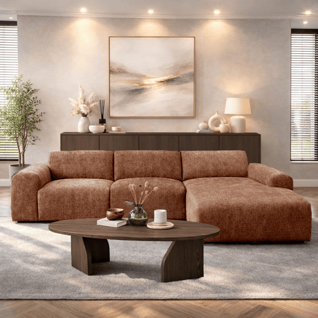 202,26Grundpreis /Nicht verfügbarEcksofa Wayne aus Chenille in Kupfer, 264 cm – Ecke links und rechts montierbar