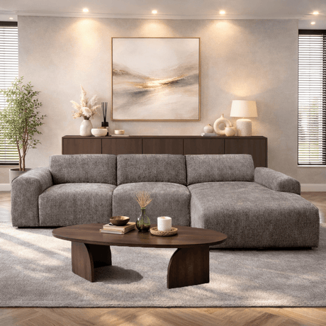 1.190,031.547,05Grundpreis /Nicht verfügbarEcksofa mit taupefarbenem Chenille-Bezug, Modell Shane - rechts
