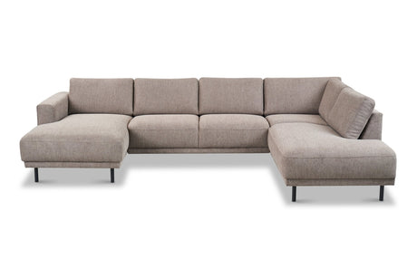 Moderne U-Bank Hoekbank Rechts Beige Stof Aniko 310x197x78 cm