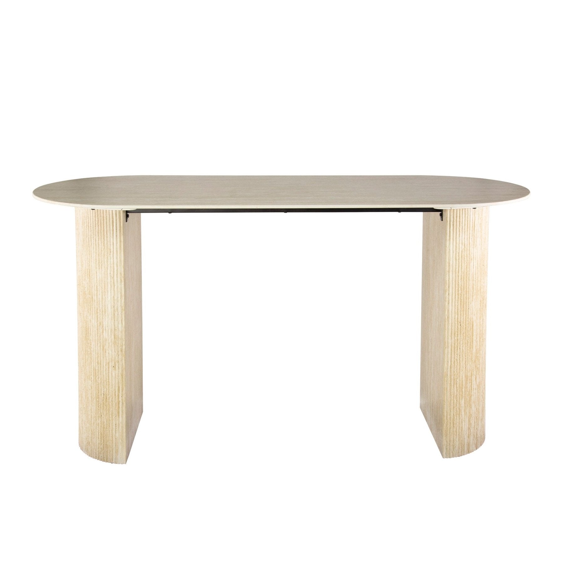 Der Arcino Bartisch kombiniert eine robuste Keramik Travertin Platte mit einem schlanken, zeitlosen Profil. Mit den ansprechenden Maßen von 178 x 70 cm bietet dieser Bartisch viel Nutzfläche, ohne zu viel Platz einzunehmen. Die keramische Travertin-Oberfläche fühlt sich natürlich an, ist kratzfest und leicht zu pflegen – ideal für Wohnumgebungen sowie leichten Gastronomiebereich.