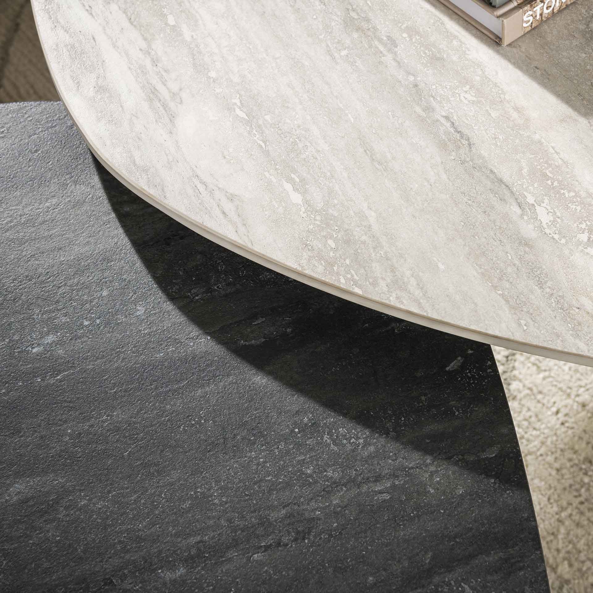 Arvo Twin Couchtisch-Set aus 2 Keramik Travertin 100x87 cm