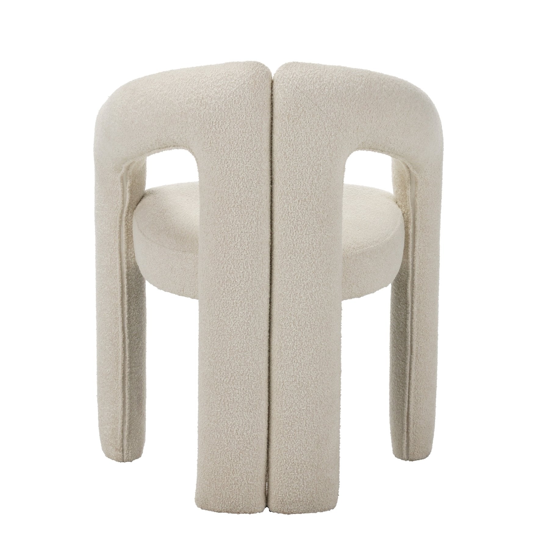 Der Maro Esszimmerstuhl von Dimehouse kombiniert modernes Design mit ultimativen Sitzkomfort. Die auffällige runde Rückenlehne fließt elegant in die Armlehnen über und sorgt für eine einladende Ausstrahlung an jedem Esstisch. Der weiche Bouclé-Stoff fühlt sich wunderbar an und bringt sofort Wärme in dein Interieur.