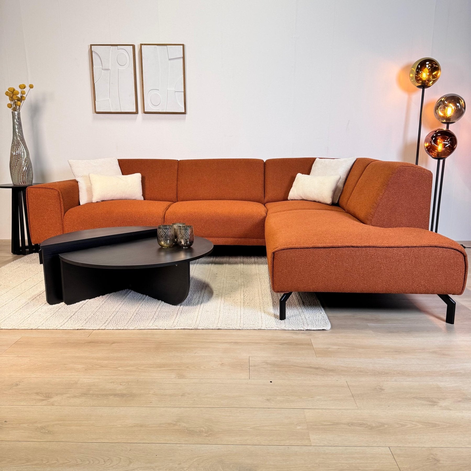 Bist du auf der Suche nach einem großen, bequemen Ecksofa aus Bouclé-Stoff? Und möchtest du, dass dein Ecksofa zum Mittelpunkt deines Wohnzimmers wird? Dann ist das Ecksofa Maël in Terrakottafarbe eine ausgezeichnete Option!