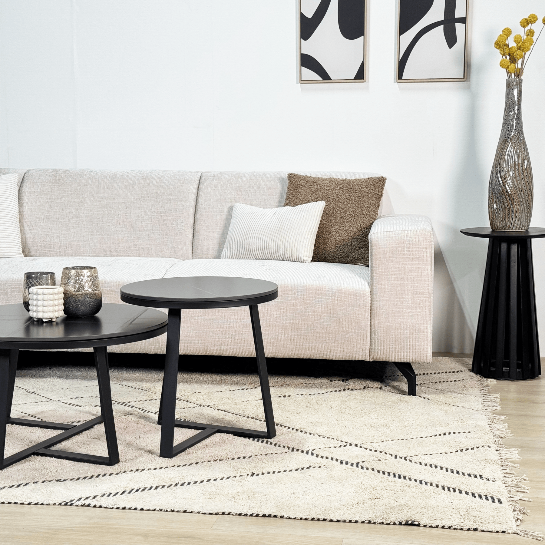 Dieses stilvolle Ecksofa Manon mit Chaise Longue verbindet Chenille Beige Komfort und Haltbarkeit mit einem modernen Design und macht es zu einer Aussage in jedem Innenraum. Das Ecksofa ist vielseitig und funktional. Die festen Kissen bleiben immer an Ort und Stelle, so dass das Sofa ein elegantes und ordentliches Aussehen behält. Der geräumige Sitzbereich bietet genügend Platz für die ganze Familie oder für die Gäste, was ihn zum idealen Ort für soziale Anlässe oder zum Entspannen macht.