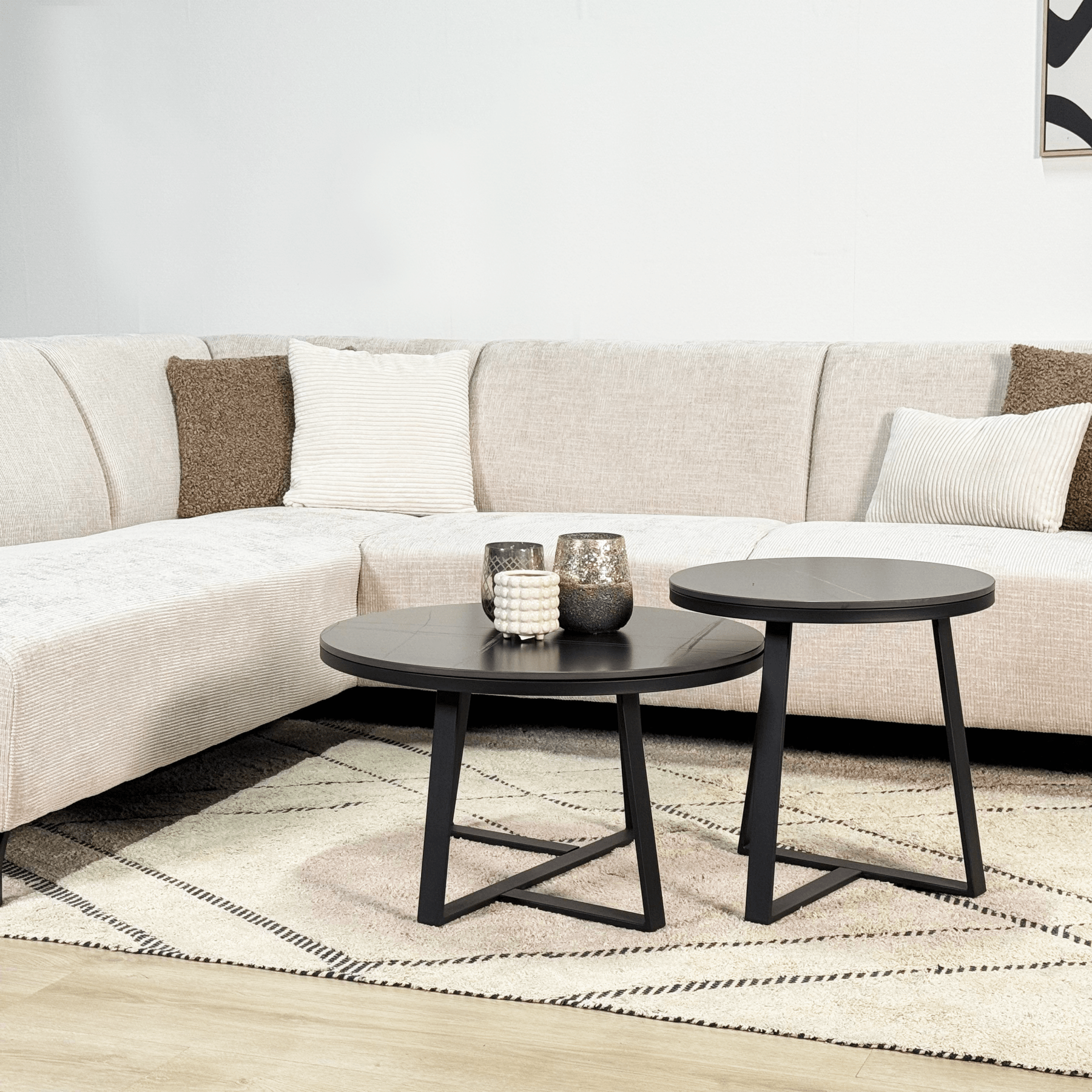 Manon Corner Sofa hat ein elegantes, modernes Design mit einem robusten und robusten Aussehen. Die festen Kissen sorgen für ein optimiertes Erscheinungsbild und bieten einen konstanten Komfort. Die festen Kissen sind sorgfältig ausgelegt, um optimale Unterstützung zu bieten, ohne Zugeständnisse zum Sitzkomfort zu erzielen. Die schlanken Metallbeine verleihen einen industriellen Akzent, der der Bank eine zeitgemäße Wendung verleiht. Die Metallbeine sind robust und langlebig, was nicht nur zur Stabilität der Couch beiträgt, sondern auch zum modernen Look.
