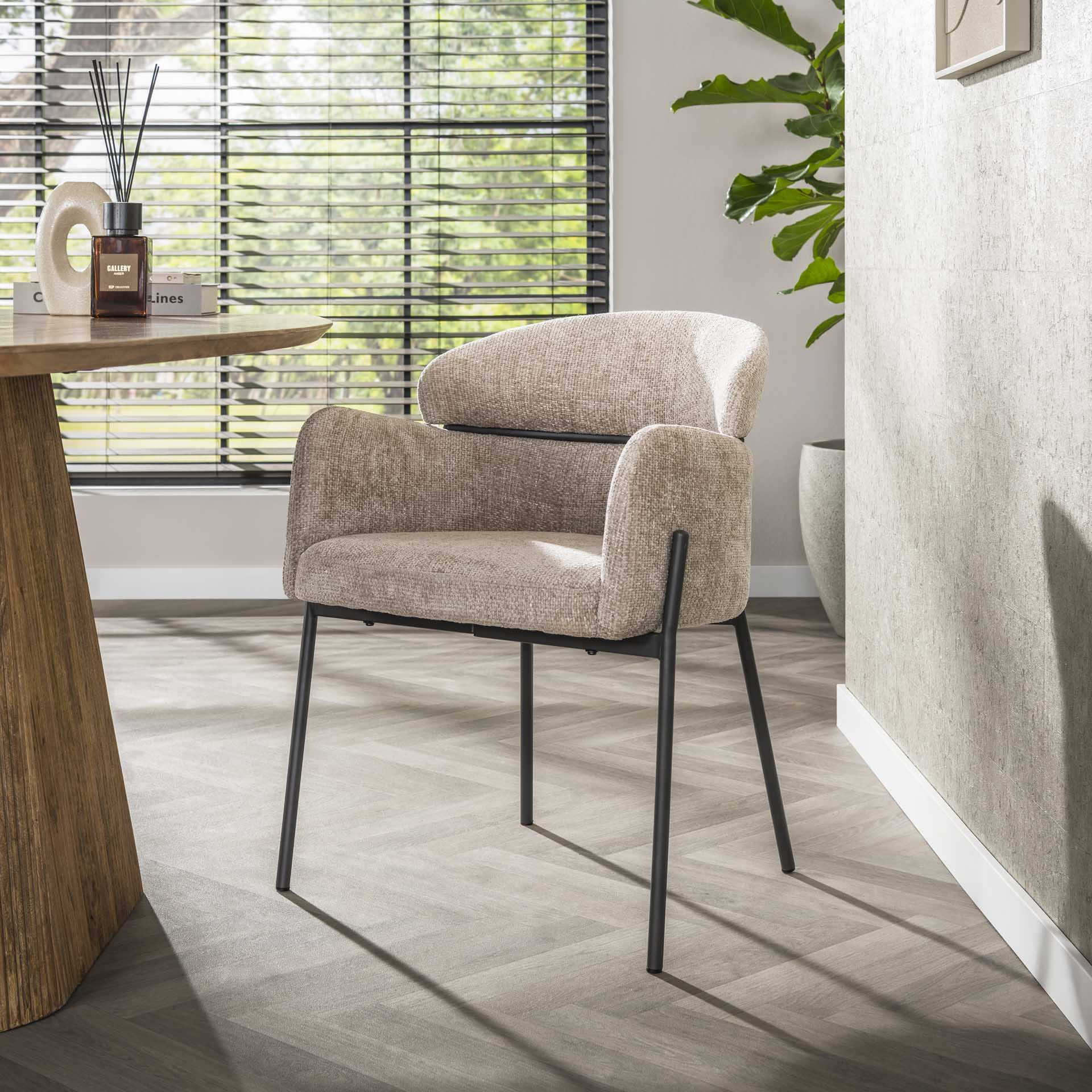 Esszimmerstuhl Lola Bouclé Stoff Sandfarbe mit rundem Rücken und Arm