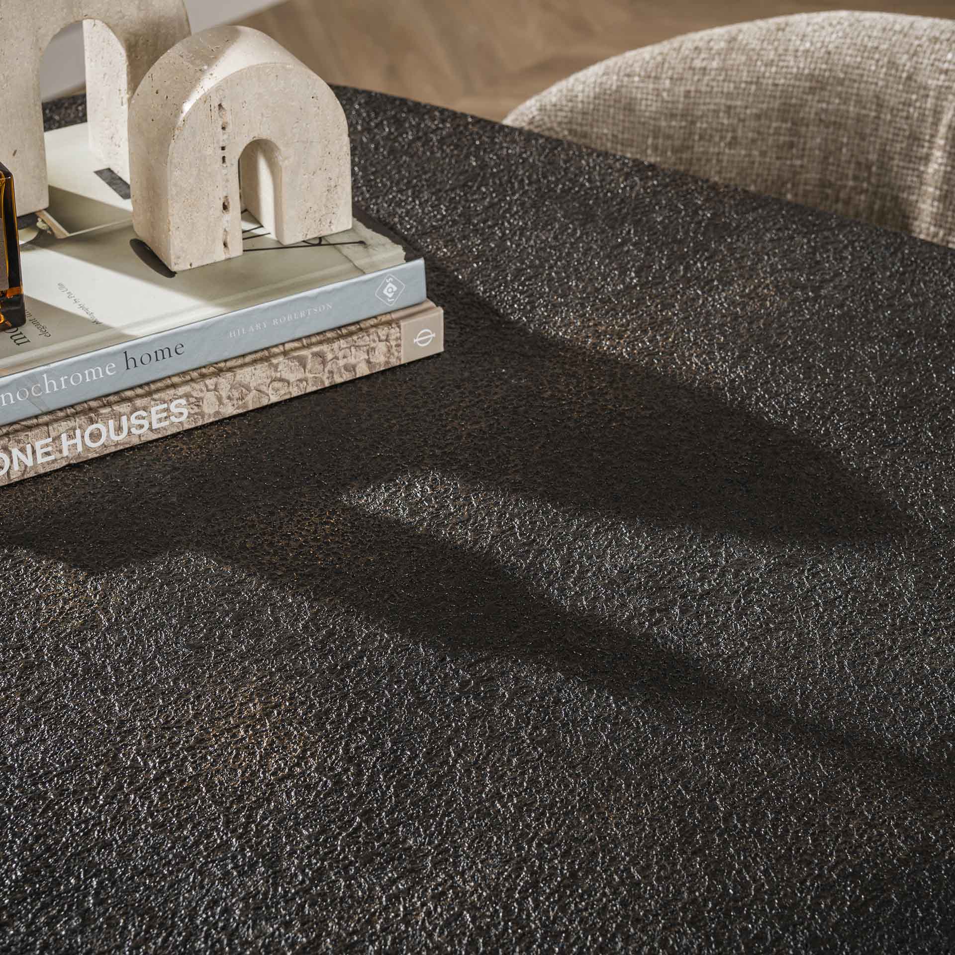Der Esstisch Jax vereint Stil und Funktionalität in deinem Essbereich. Die dänische ovale Platte von 180 x 90 cm in elegantem Grau sorgt für ein weiches, organisches Erscheinungsbild, das perfekt zu modernen und skandinavischen Interieurs passt. Dank der abgerundeten Konturen wirkt der Tisch luftig, während der subtile Metallic-Effekt Tiefe und Luxus hinzufügt. Mit Platz für bis zu 6 Personen ist dies der ideale Tisch für Mahlzeiten unter der Woche und gesellige Abendessen. Die pflegeleichte Tischplatte erleichtert die Reinigung, sodass du unbeschwert lange Abende am Tisch genießen kannst.