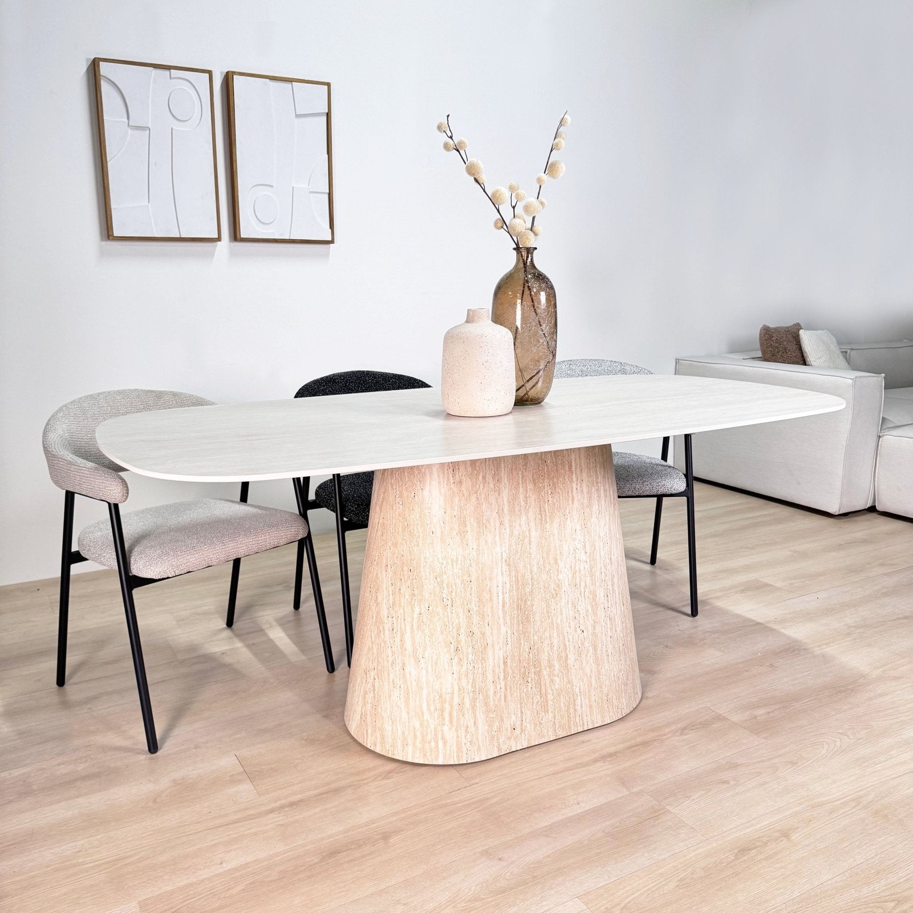 Da Bouclé meist in ruhigen, neutralen Farbtönen erhältlich ist, fügt es sich nahtlos in verschiedene Einrichtungsstile ein und kombiniert mühelos mit klaren oder organischen Formen. Das Material ist von Natur aus langlebig und behält auch nach längerem Gebrauch sein schönes Aussehen, sodass langes Tafeln nie unangenehm wird. Möchten Sie Ruhe und dennoch Charakter in Ihrem Interieur? Mit Bouclé entscheiden Sie sich für zeitlose Eleganz und Komfort in einem.