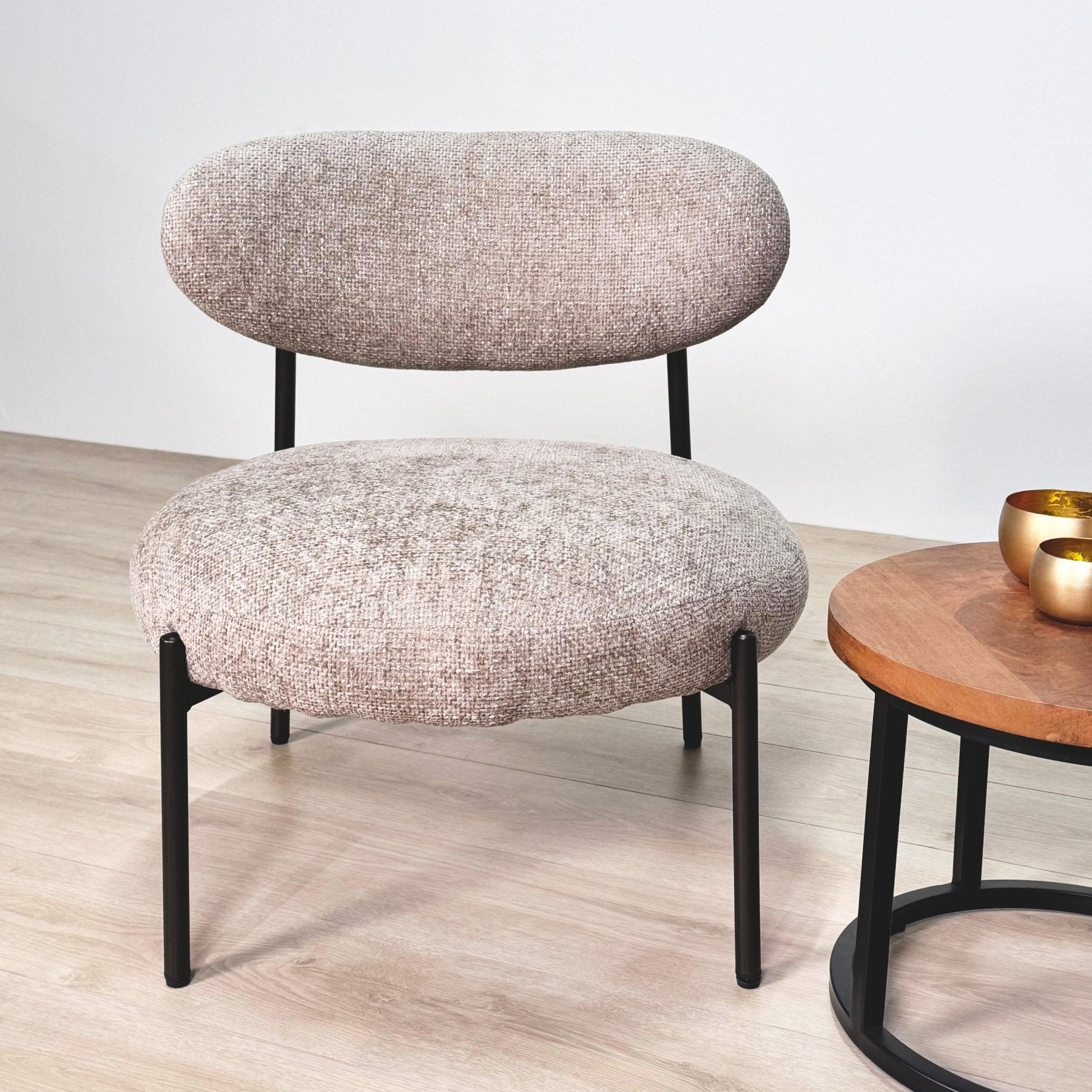 Lerne den Sessel Nova Rond kennen, einen stilvollen Blickfang mit weicher, sandfarbener Polsterung. Die rund geformte Sitzfläche und Rückenlehne bieten eine herrlich bequeme Sitzgelegenheit, während das kompakte Format mühelos in kleinere Wohnzimmer, Schlafzimmer oder Leseecken passt. Der neutrale Beigeton lässt sich einfach mit verschiedensten Einrichtungsstilen kombinieren; von modern bis skandinavisch. Dank des langlebigen gewebten Stoffs ist Nova Rond für den täglichen Gebrauch und alle Jahreszeiten geeignet.