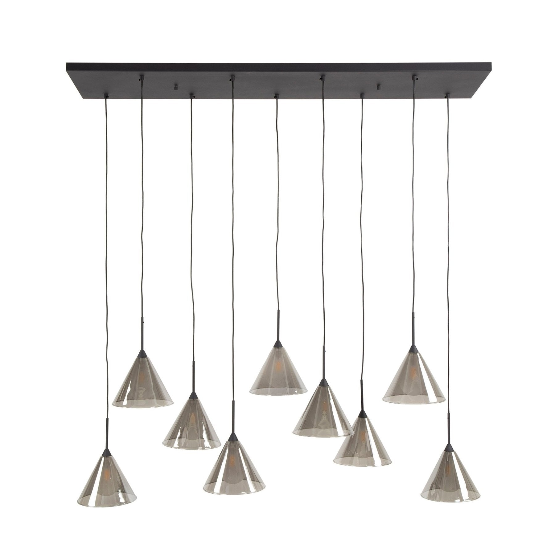Hängeleuchte Niaz 7-flammig konische Schirm rauchgraues Glas