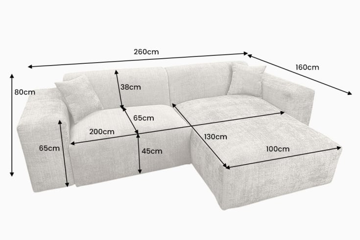 | Totale diepte | 160 cm (bij ottomane), 95 cm (zitgedeelte) |