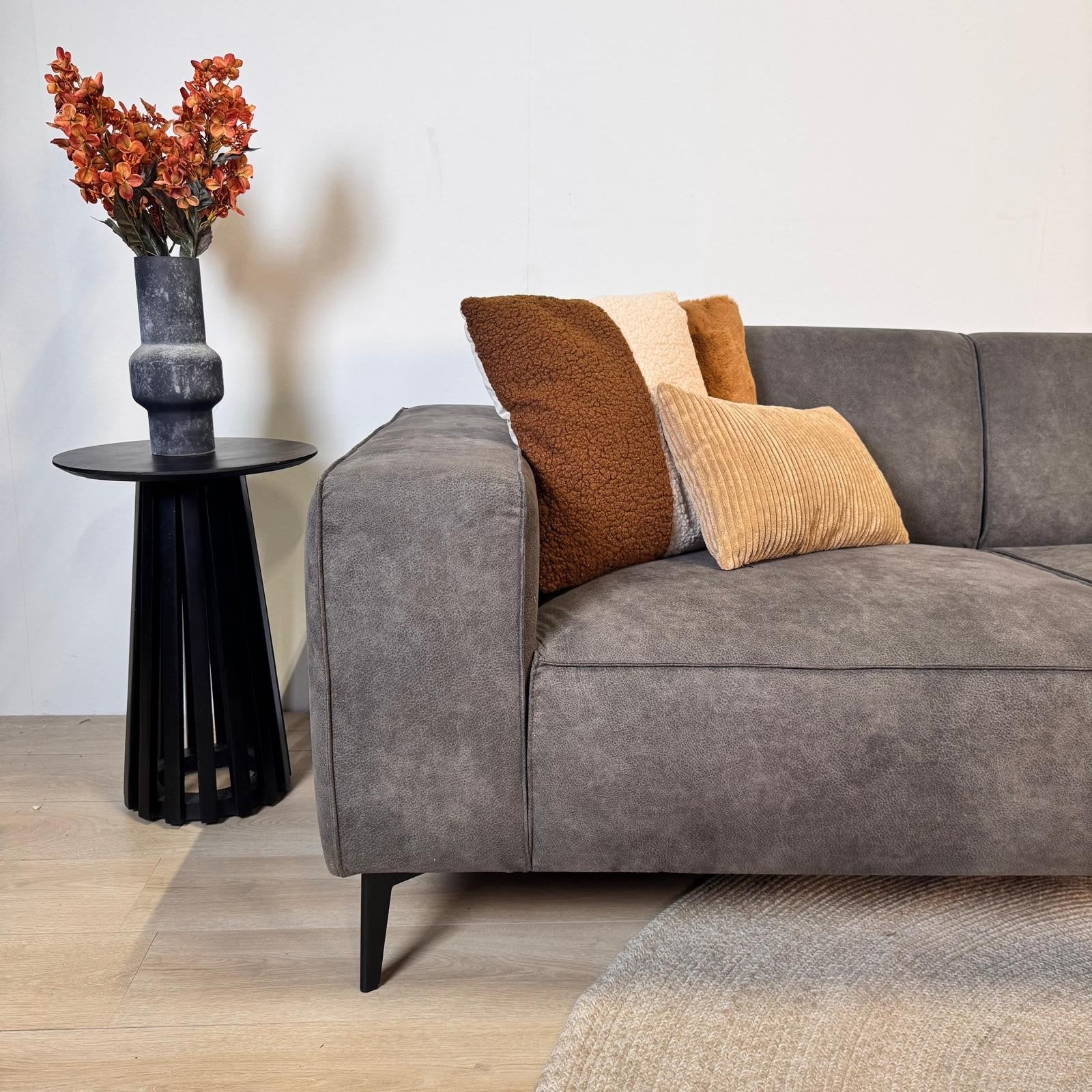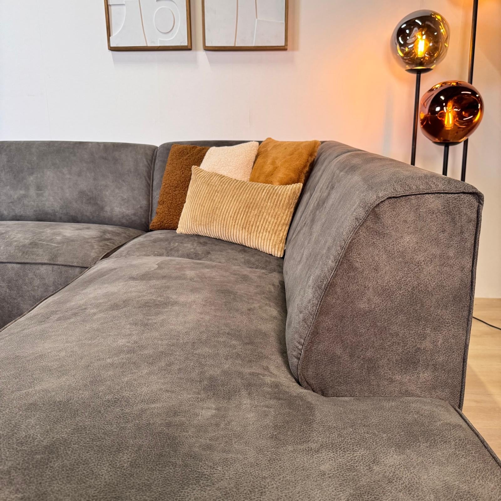 Das Ecksofa Brisbane ist aus Eco-Leder gefertigt. Das Sofa ist nämlich mit Tauro bezogen. Eco-Leder wird auch als recyceltes Leder bezeichnet. Es handelt sich um eine Kombination aus Leder (70%), das aus Lederproduktionen übrig geblieben ist, und Polyester (30%). So entsteht ein neues Material: recyceltes Leder. Da beide Materialien bei der Produktion gemischt werden, ist es möglich, einen eigenen Druck auf das Material aufzubringen. Dadurch erhält dieses recycelte Leder eine sehr robuste Ausstrahlung. Bei diesem Bezug wurde eine vollständige Vintage-Optik gewählt, die den Eindruck erweckt, dass das Material bereits eine Zeit lang in Gebrauch war. Der Vorteil von recyceltem Leder ist, dass es viel einfacher zu pflegen ist als Vollleder.