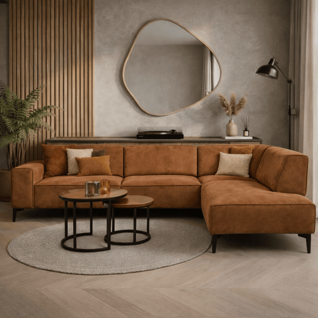 Das Ecksofa Brisbane ist ein wunderschönes Ecksofa für das Wohnzimmer. Das Ecksofa ist mit Leder bezogen und bietet einen komfortablen Sitz. Die Rückenkissen und die Sitzfläche sind fest gepolstert und fühlen sich bequem an. Da das Ecksofa stolze 275 cm breit ist, können genügend Personen auf dem Sofa Platz nehmen. Das Ecksofa steht auf hohen, metallenen Beinen und hat eine industrielle Ausstrahlung. Das Brisbane ist eine wertvolle Ergänzung für das Wohnzimmer. Dieses Ecksofa ist auch mit der Chaiselongue auf der anderen Seite und in Anthrazit erhältlich.