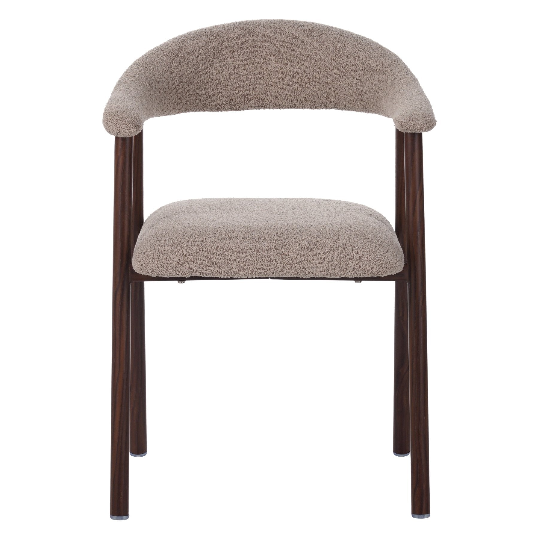 Japandi Esszimmerstuhl Sandfarbe Bouclé Suki - Walnussrahmen - Mit Armlehne
