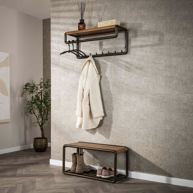 Garderobenstange Arlo mit Kleiderstange und Hutablage, 8 Haken, Drift Braun