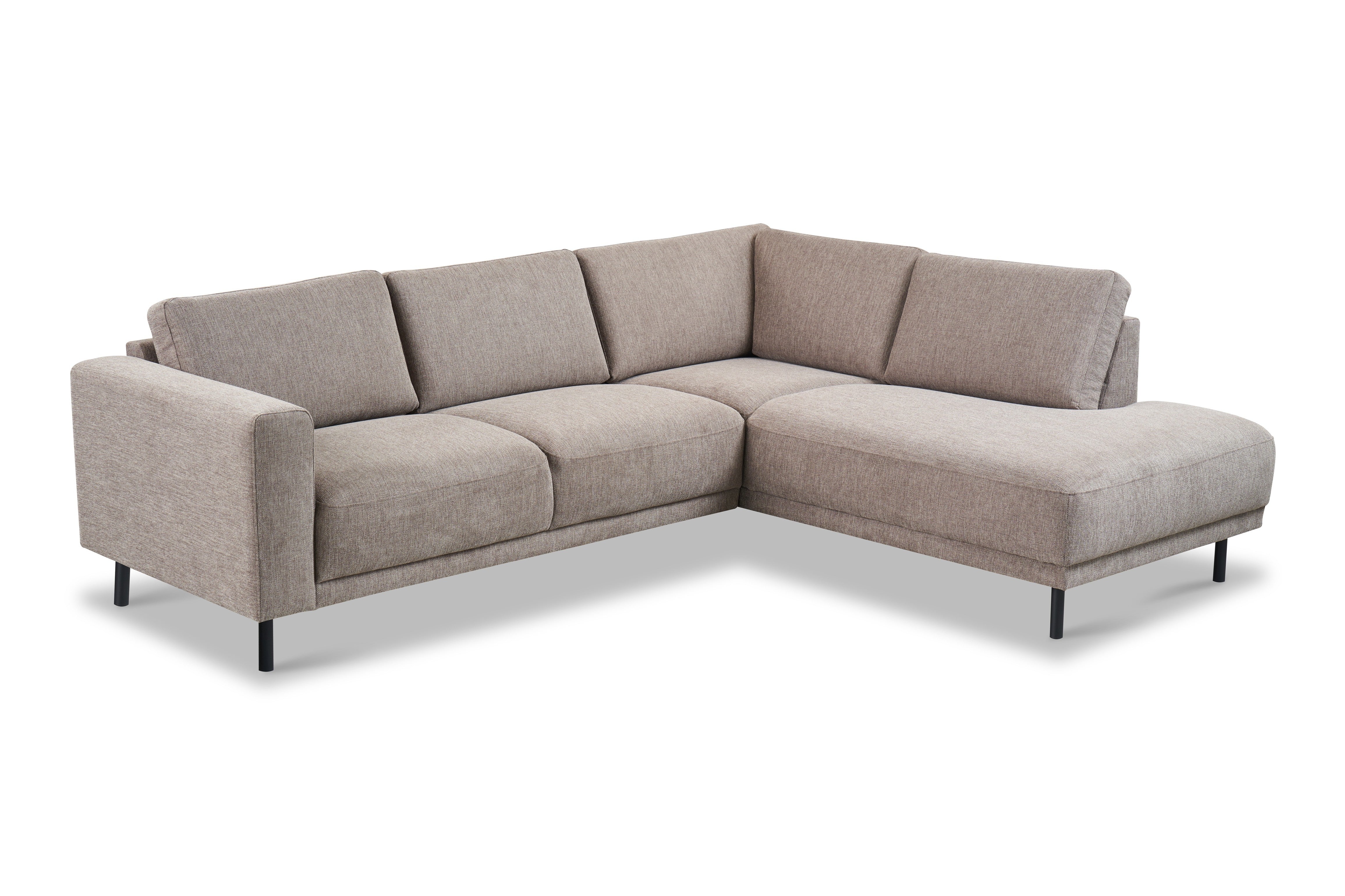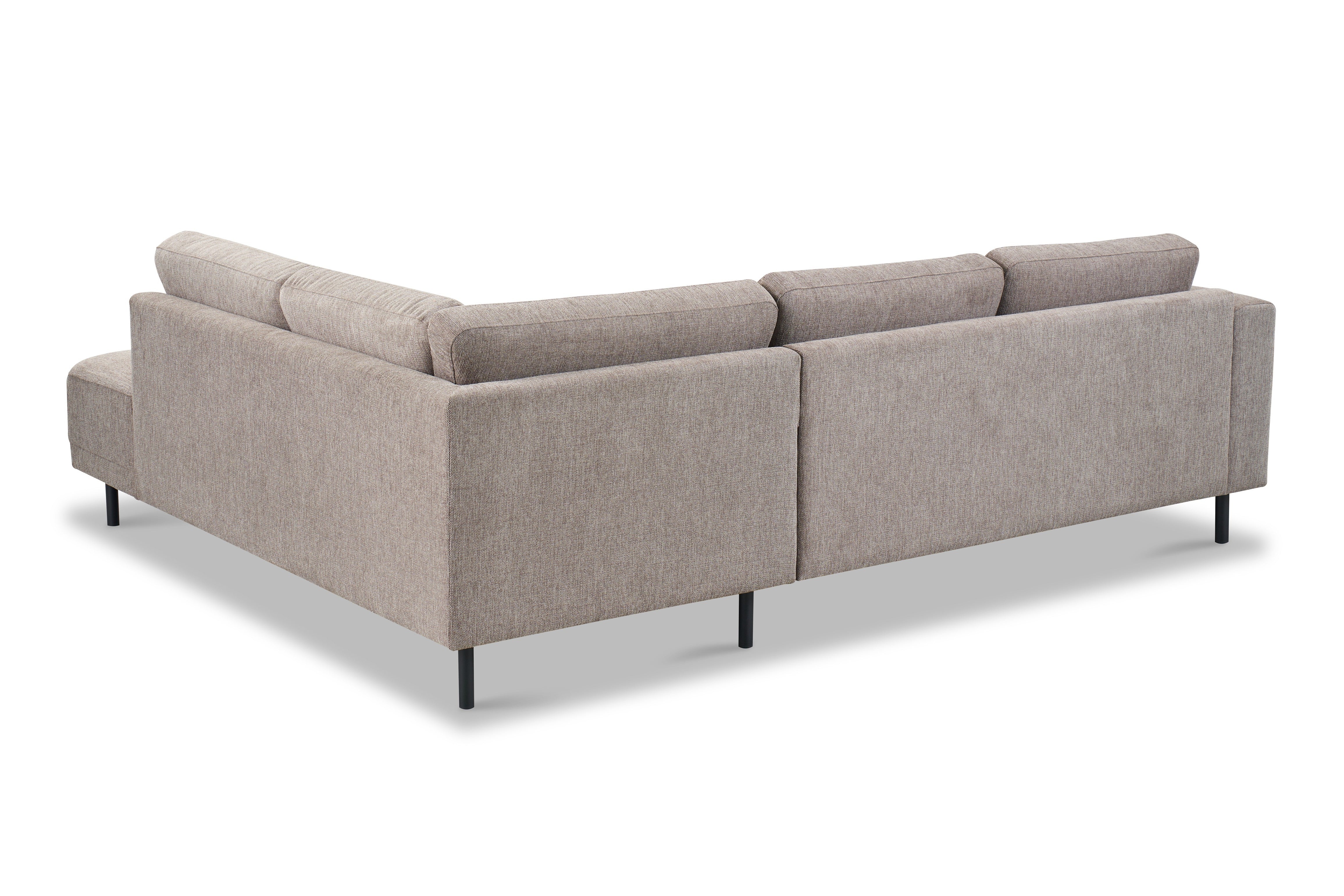 Beschreibung und Spezifikationen von Moderne 3-zits Hoekbank Rechts Taupe Stof Aniko met Lounger 240x197x78 cm