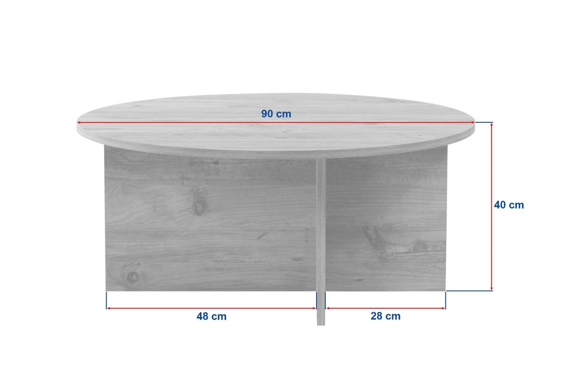 Beschreibung und Spezifikationen von Runder Couchtisch Dakota Travertin Melamin 90x90x40 cm