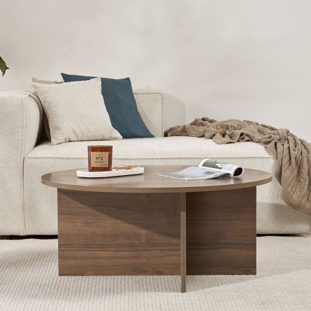Lernen Sie diesen eleganten Couchtisch kennen, der Wärme und Funktionalität in Ihr Wohnzimmer bringt. Das klare Design und die warme Walnussfarbe verleihen jedem Interieur sofort einen Hauch von Luxus. Dank einer melaminbeschichteten Platte ist der Tisch langlebig und pflegeleicht, ideal für den täglichen Gebrauch in Gesellschaft.