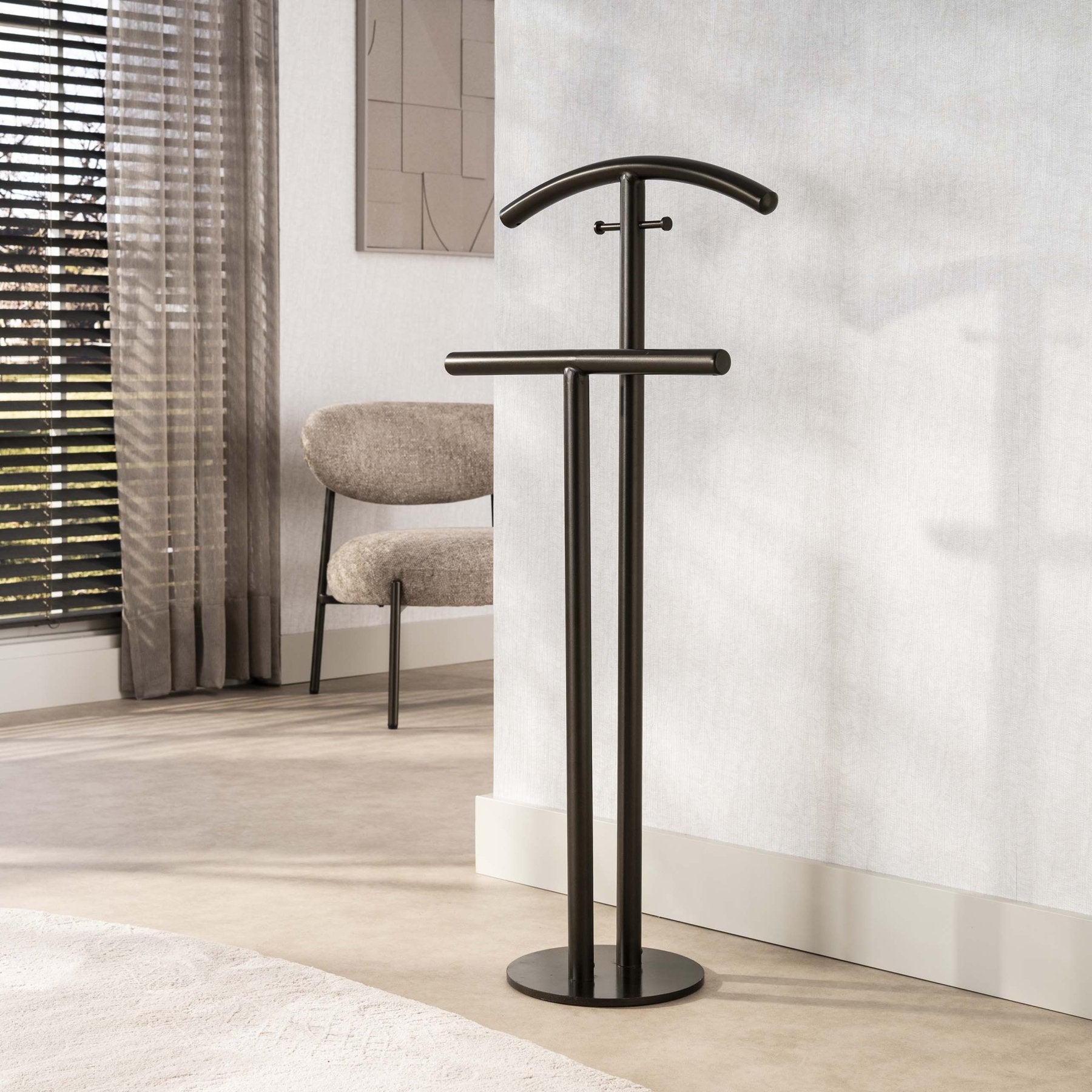 Die Garderobe ist einfach zu platzieren und erfordert keine feste Befestigung an der Wand. Dank des stabilen Designs bietet sie Platz für Mäntel, Taschen und Accessoires, ohne viel Raum zu beanspruchen. Das langlebige Material und die neutrale Farbe erleichtern die Pflege und sorgen für eine langanhaltende Nutzung.