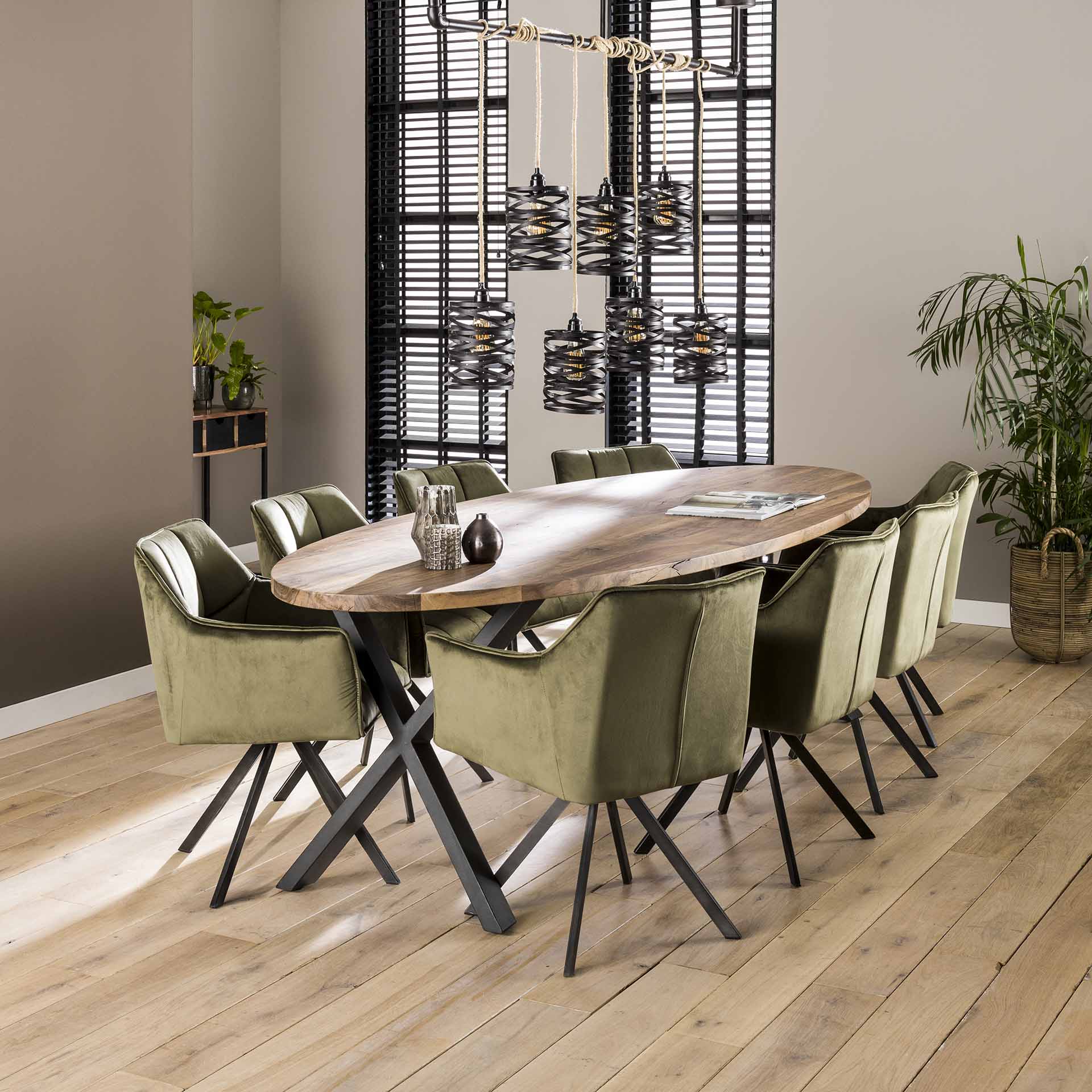 Dieses Set aus 2 drehbaren Esszimmerstühlen bietet eine raffinierte Kombination aus luxuriösem Velours und modernem Komfort. Die Lino-Serie ist für den Einsatz am Esstisch oder als Akzentstuhl in einem stilvollen Wohnzimmer konzipiert. Der weiche, grüne Veloursbezug verleiht eine warme Ausstrahlung und ist angenehm im Gebrauch. Dank des drehbaren Untergestells fließt die Bewegung natürlich und benutzerfreundlich, ideal für Abendessen, Homeoffice oder entspannte Momente.