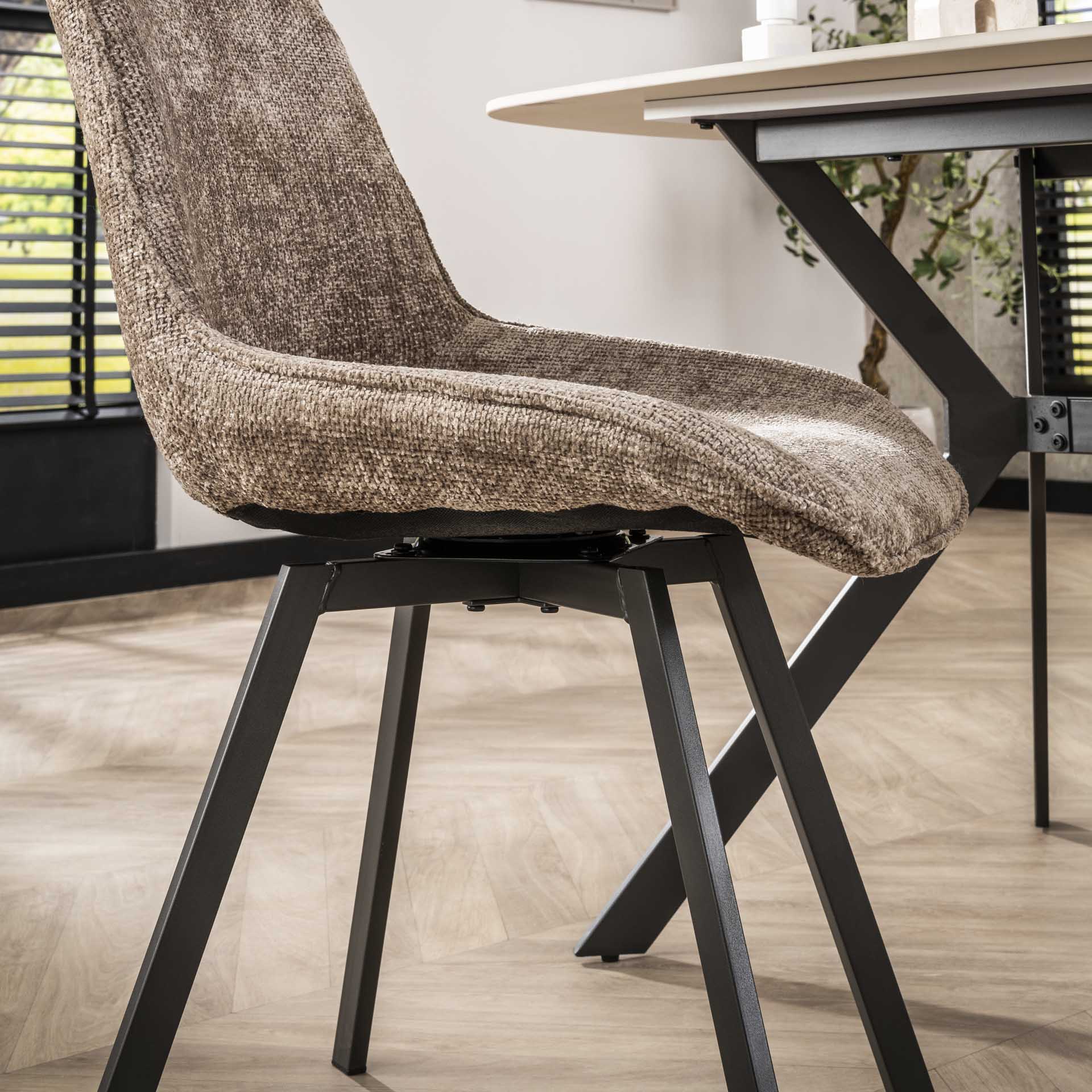 Dieses Set von 4 Esszimmerstühlen kombiniert zeitloses Design mit modernem Benutzerkomfort. Die Riviera Rich Champagner Ausführung bietet ein sanftes Erscheinungsbild dank der reichen Farbe und gleichmäßig verarbeiteten Polsterung. Jeder Stuhl ist drehbar und für eine bequeme Sitzhaltung während langer Abendessen oder Arbeitsmomente am Tisch entworfen. Die kompakten Abmessungen machen die Stühle sowohl für kleinere Esszimmer als auch für größere Essbereiche geeignet.