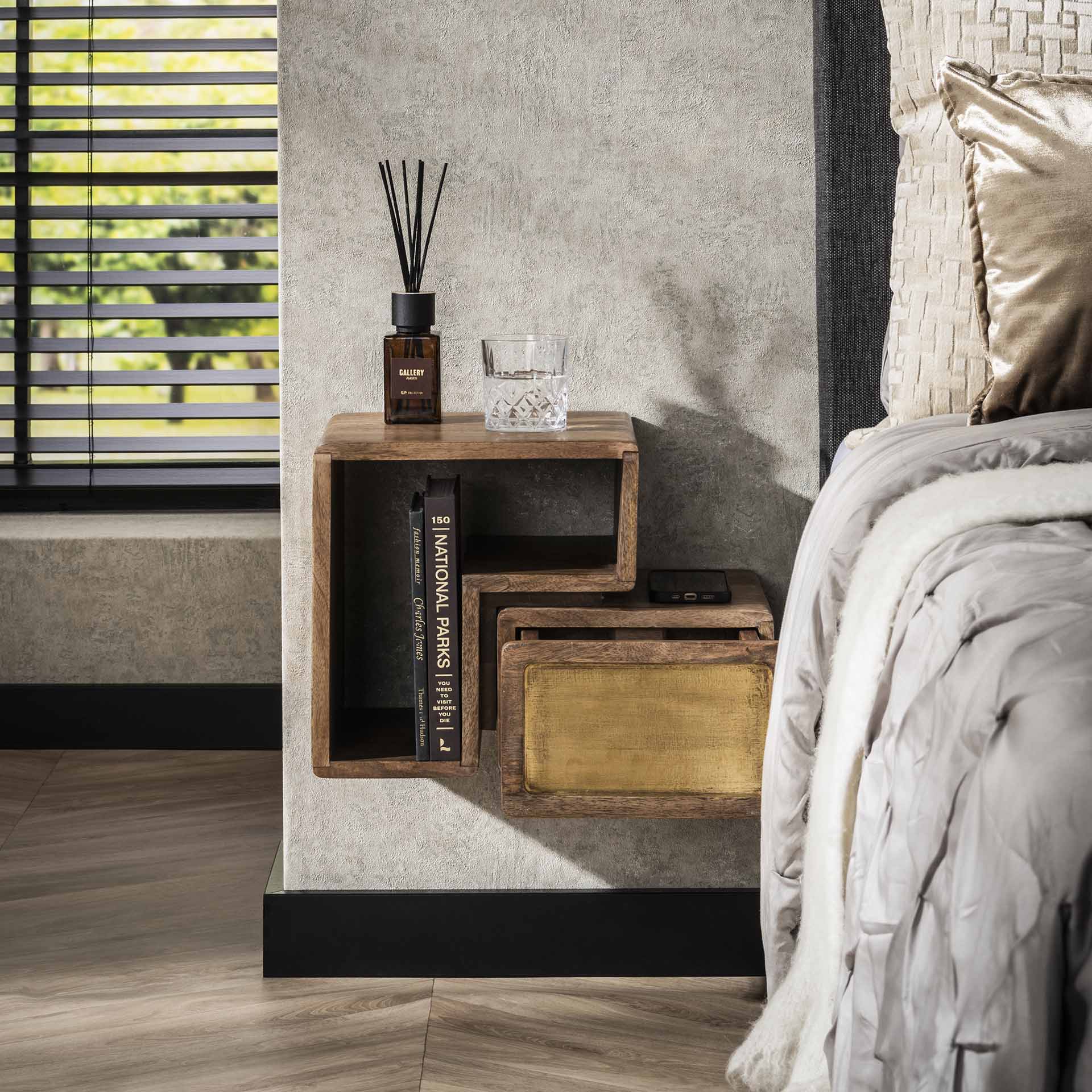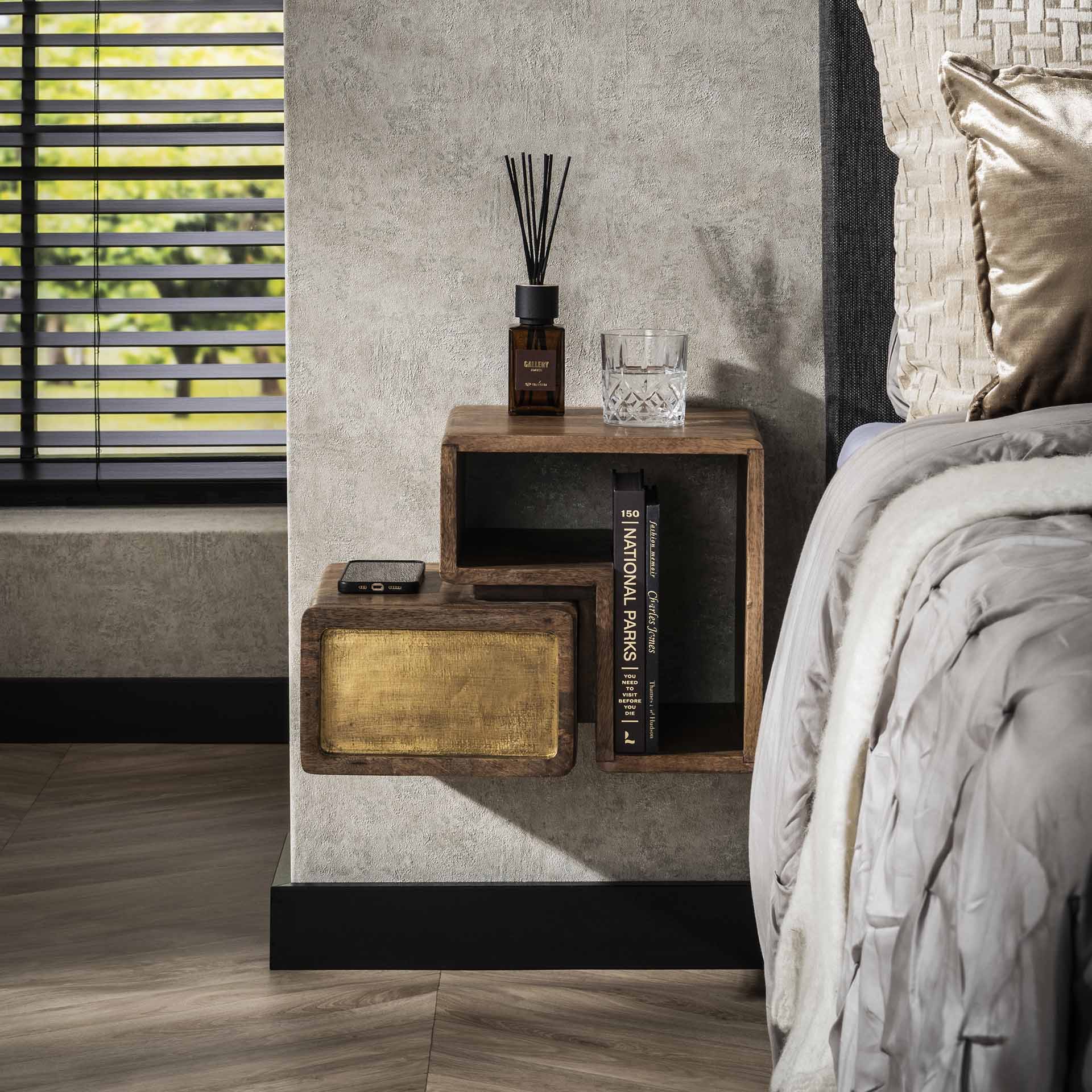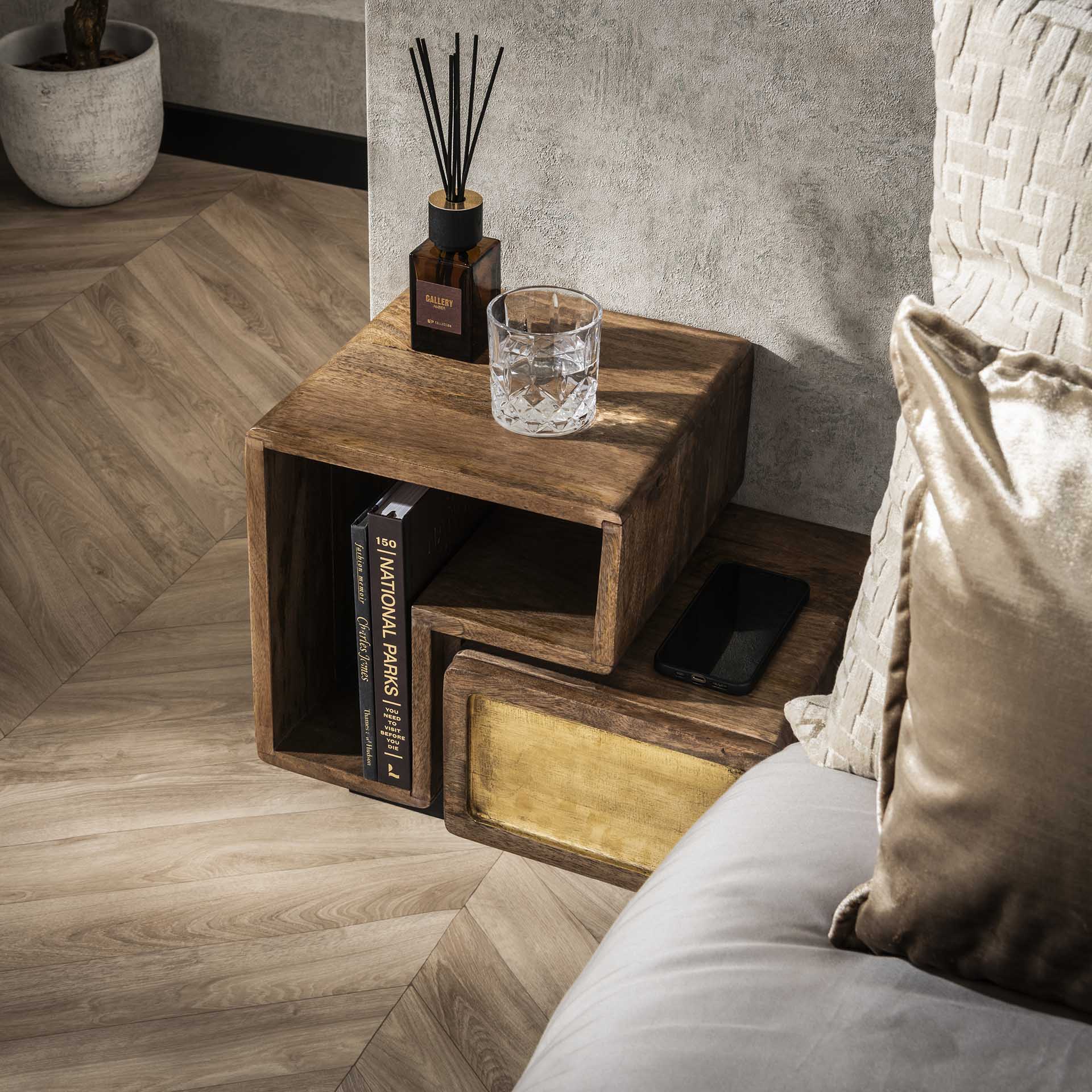 Solano Set von 2 Nachttischen Massiv Mango Sand Messing