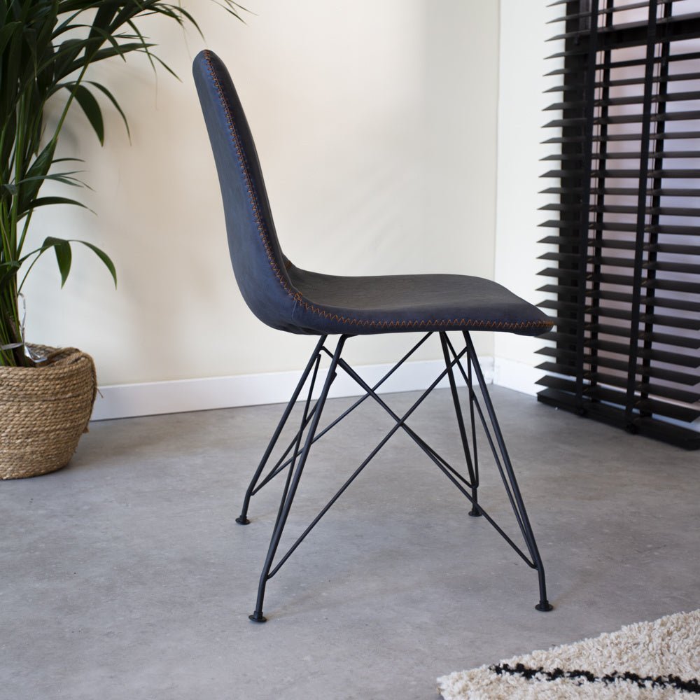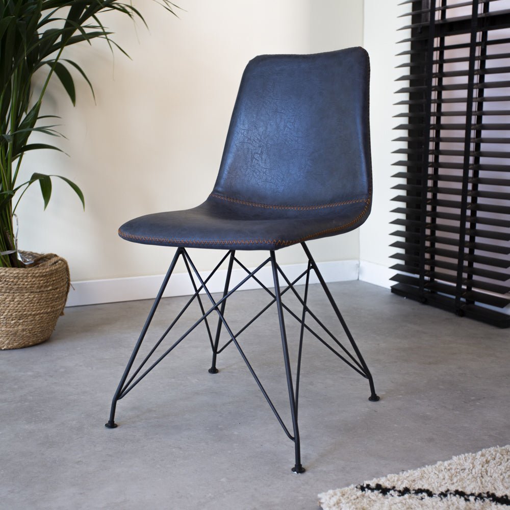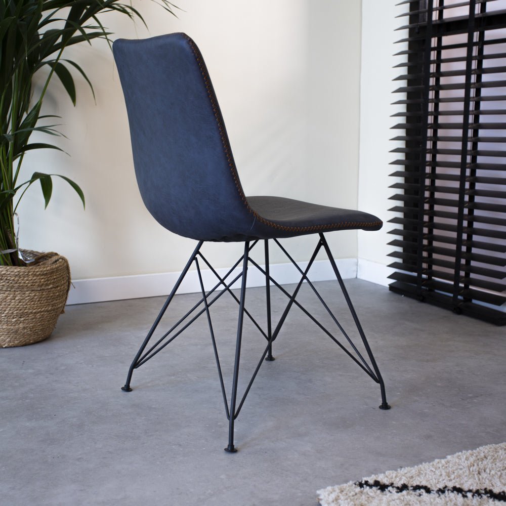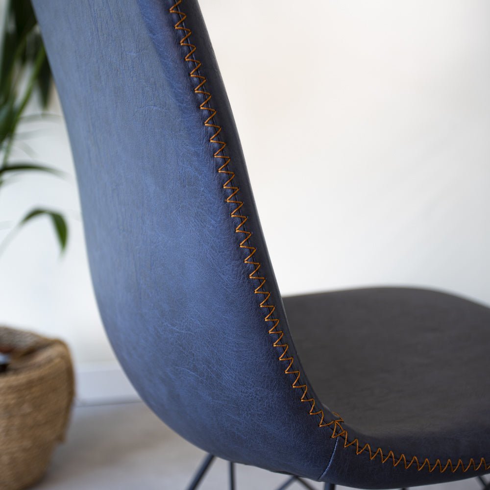 Industrielle Esszimmerstuhl Viano blau ist ein extrem robustes und stylisches Modell! Auf diesen Schalenstühlen kannst du stundenlang sitzen und gemütlich mit der ganzen Familie tafeln. Der industrielle Esszimmerstuhl Viano hat ein schönes schwarz pulverbeschichtetes Gestell mit Kunstlederbezug und auffälligen Steppnähten.